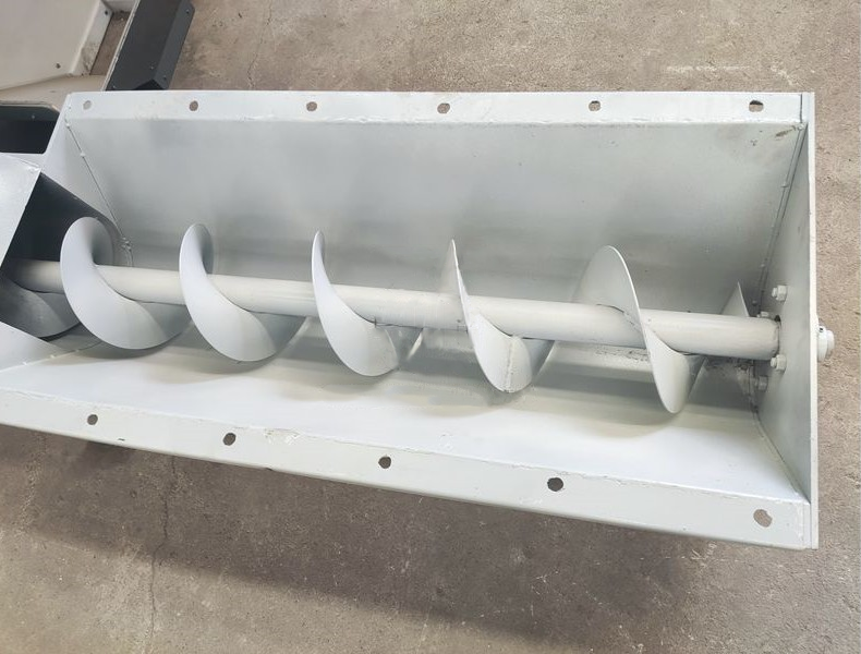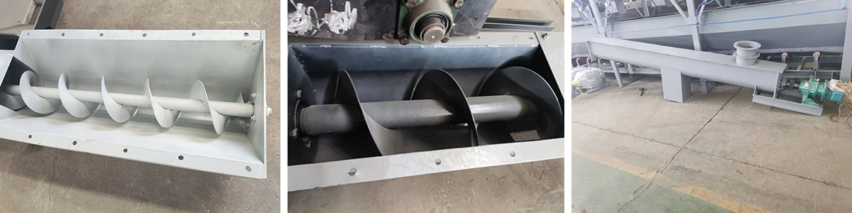 旋轉的螺旋葉片將物料推移而進行螺旋輸送機輸送,使物料不與螺旋輸送機葉片一起旋轉的力是物料自身重量和螺旋輸送機機殼對物料的摩擦阻力。螺旋輸送機旋轉軸上焊的螺旋葉片,葉片的面型根據輸送物料的不同有實體面型、帶式面型、葉片面型等型式。螺旋輸送機的螺旋軸在物料運動方向的終端有止推軸承以隨物料給螺旋的軸向反力,在機長較長時,應加中間吊掛軸承。